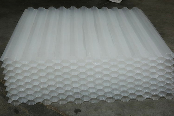 蜂窩狀填料的材質(zhì)多為玻璃鋼和塑料,這種填料具有一系列的特征,其中主要是:比表面積大,從133m2/m3到360m2/m3(根據(jù)內(nèi)切圓直徑?jīng)Q定);空隙率高,達(dá)97%~98%質(zhì)輕但強(qiáng)度高,堆積高度可達(dá)4~5m;管壁光滑無死角,衰老生物膜易于脫落等,蜂窩狀填料的缺點(diǎn)是:當(dāng)選定的蜂窩孔徑與BOD負(fù)荷率不相適應(yīng),生物膜的生長與脫落失去平衡,填料易于堵塞;當(dāng)采用的曝氣方式不適宜時(shí),蜂窩管內(nèi)的流速難于均一等。對(duì)此,應(yīng)采取適當(dāng)?shù)膶?duì)策:選定的蜂窩孔徑應(yīng)與BOD負(fù)荷率相適應(yīng);采取曝氣方式:采取充填措施在兩層之間留有200~300mm的間隙,每層高不超過1.5m,使水流在層間再次分配,形成恒流與紊流,使水流得到均勻分布,并防止中下部填料因受壓而變形蜂窩狀填料主要有六角蜂窩填料和片狀斜管分類兩種形式。